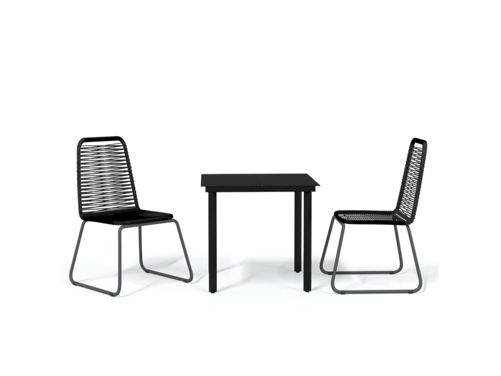 Zahradní jídelní set má práškově lakovaný ocelový rám, takže je robustní a stabilní a ideální pro venkovní použití. Hladká skleněná deska stolu se snadno čistí vlhkým hadříkem a skvěle vám poslouží k podávání jídla a pití nebo k vystavení různých dekorativních předmětů. Židle jsou vyrobené z PE ratanu, jsou proto lehké a voděodolné.