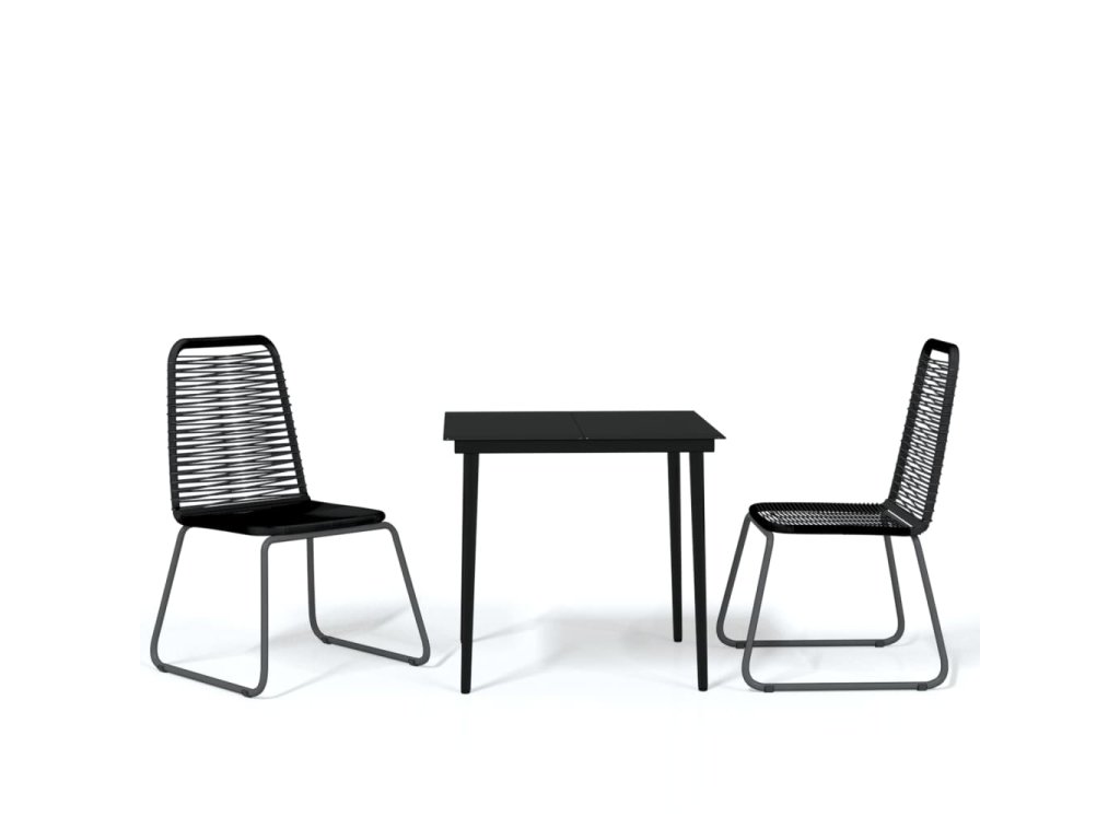 Zahradní jídelní set má práškově lakovaný ocelový rám, takže je robustní a stabilní a ideální pro venkovní použití. Hladká skleněná deska stolu se snadno čistí vlhkým hadříkem a skvěle vám poslouží k podávání jídla a pití nebo k vystavení různých dekorativních předmětů. Židle jsou vyrobené z PE ratanu, jsou proto lehké a voděodolné.