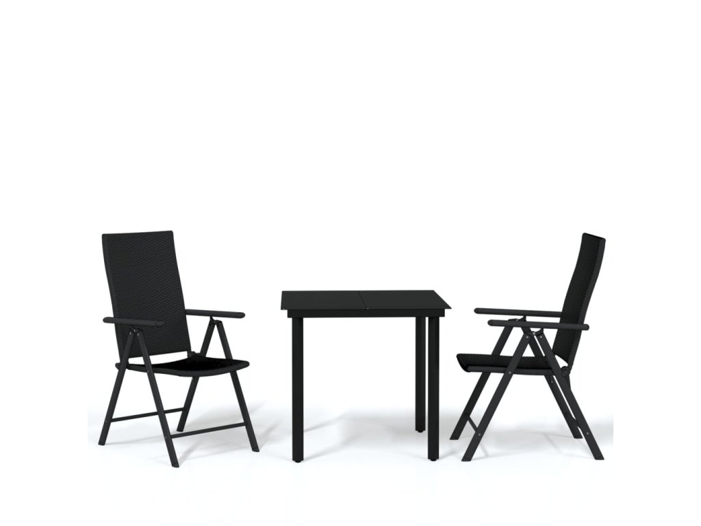 Zahradní jídelní stůl má práškově lakovaný ocelový rám, takže je robustní a stabilní a ideální pro venkovní použití. Hladká skleněná deska stolu se snadno čistí vlhkým hadříkem a skvěle vám poslouží k podávání jídla a pití nebo k vystavení různých dekorativních předmětů. Židle jsou vyrobené z PE ratanu, jsou proto lehké a voděodolné. Jejich opěradla lze navíc naklonit do 7 různých poloh, abyste si mohli vždy najít ten nejpohodlnější způsob sezení. Pokud židle zrovna nepoužíváte, můžete je složit, a ušetřit tak místo.