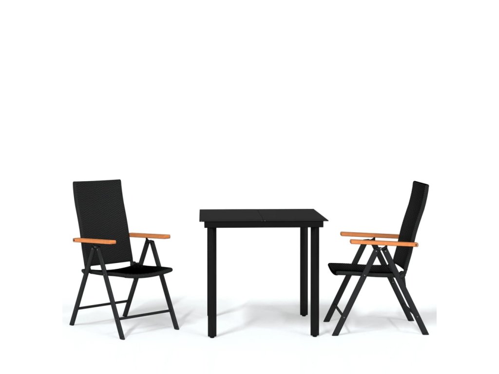 Zahradní jídelní stůl má práškově lakovaný ocelový rám, takže je robustní a stabilní a ideální pro venkovní použití. Hladká skleněná deska stolu se snadno čistí vlhkým hadříkem a skvěle vám poslouží k podávání jídla a pití nebo k vystavení různých dekorativních předmětů. Židle jsou vyrobené z PE ratanu, jsou proto lehké a voděodolné. Jejich opěradla lze navíc naklonit do 7 různých poloh, abyste si mohli vždy najít ten nejpohodlnější způsob sezení. Pokud židle zrovna nepoužíváte, můžete je složit, a ušetřit tak místo.