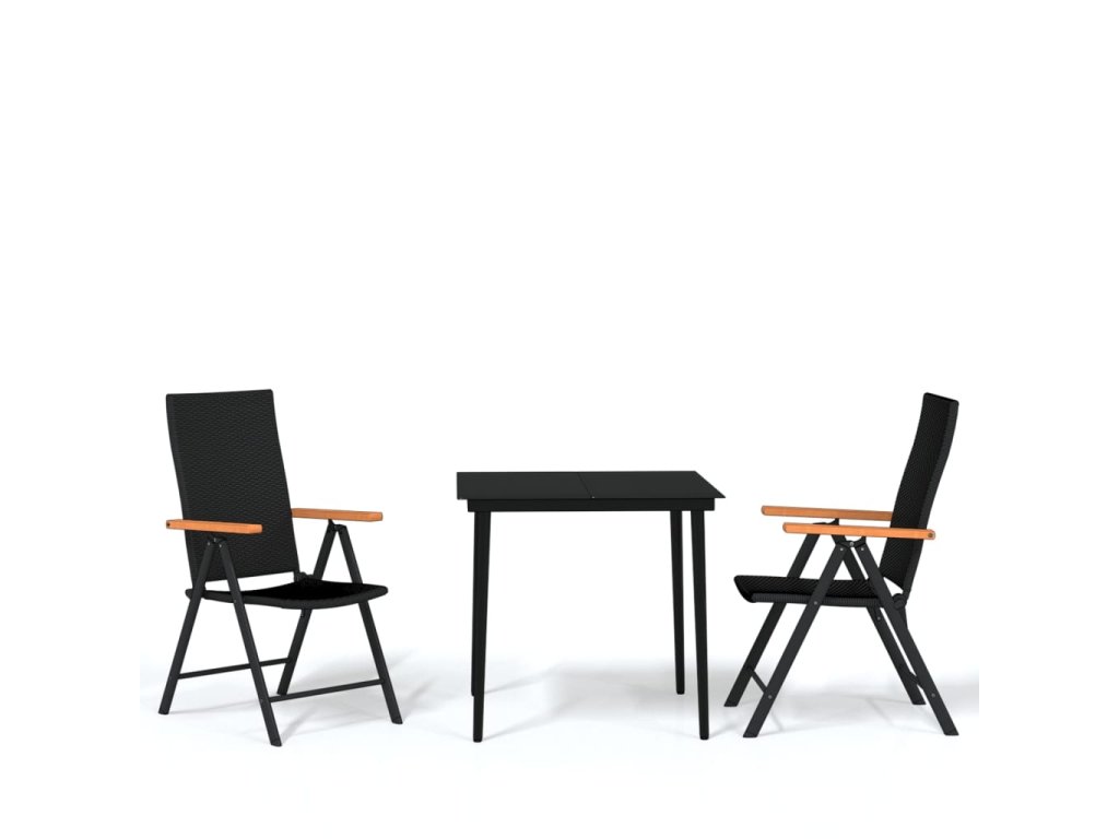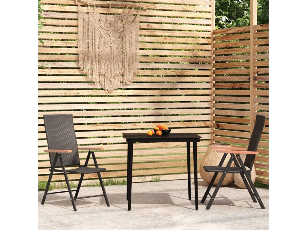Zahradní jídelní stůl má práškově lakovaný ocelový rám, takže je robustní a stabilní a ideální pro venkovní použití. Hladká skleněná deska stolu se snadno čistí vlhkým hadříkem a skvěle vám poslouží k podávání jídla a pití nebo k vystavení různých dekorativních předmětů. Židle jsou vyrobené z PE ratanu, jsou proto lehké a voděodolné. Jejich opěradla lze navíc naklonit do 7 různých poloh, abyste si mohli vždy najít ten nejpohodlnější způsob sezení. Pokud židle zrovna nepoužíváte, můžete je složit, a ušetřit tak místo.