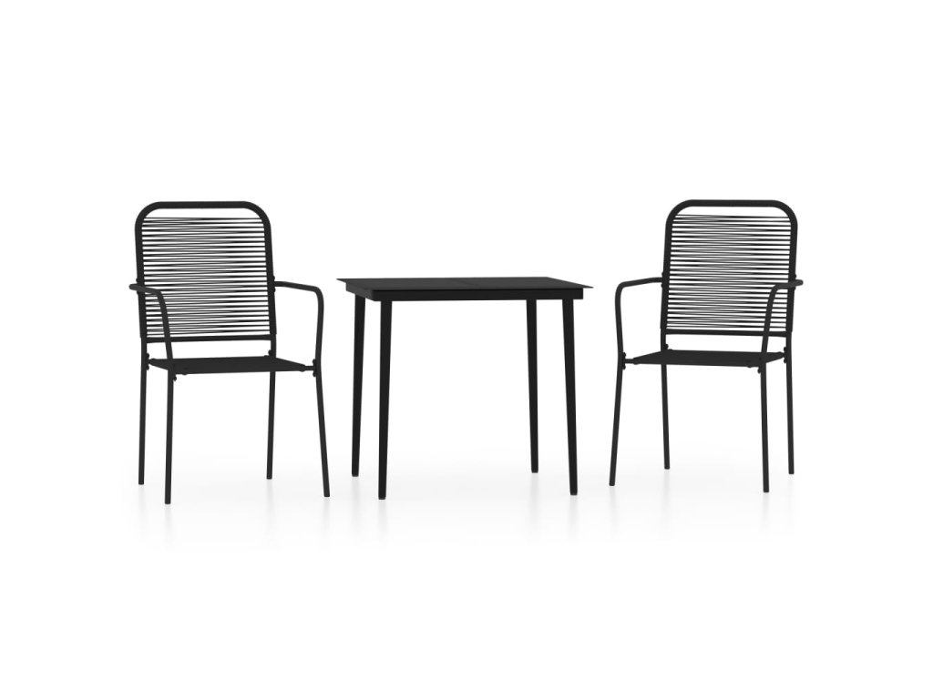 Tato zahradní jídelní souprava má ocelový rám s práškovým nástřikem, což dodává stolu a židlím na stabilitě a odolnosti. Opěradlo a sedák jsou vyrobeny ze spleteného bavlněného lanka, které je měkké na dotek a pevné pro dlouhodobé používání. Stůl má desku z tvrzeného skla, která se snadno čistí vlhkým hadříkem a je ideální pro servírování jídel a nápojů či vystavení různých dekorativních předmětů.