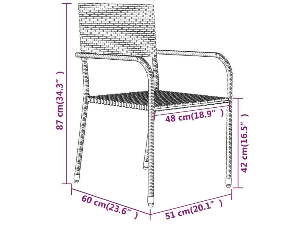 Praktická zahradní jídelní sestava má ocelový rám, takže je pevná a odolná. Zahradní židle jsou vyrobené z voděodolného PE ratanu, jsou tedy nenáročné na údržbu a ideální pro venkovní použití. Venkovní židle jsou navíc lehké a lze je stohovat, abyste ušetřili místo, když se právě nepoužívají. Hladká skleněná stolní deska se snadno čistí vlhkým hadříkem a skvěle se hodí k servírování jídel a nápojů či vystavení různých dekorativních předmětů.