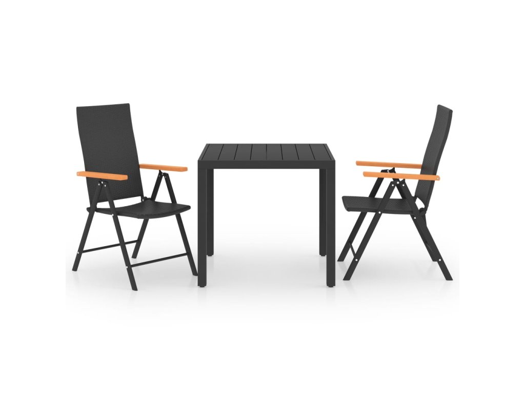 3dílný zahradní jídelní set černý a hnědý 3060082