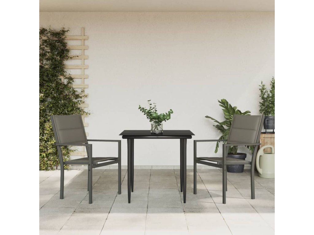 3dílný zahradní jídelní set černý ocel a textilen 3200734