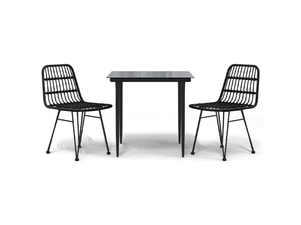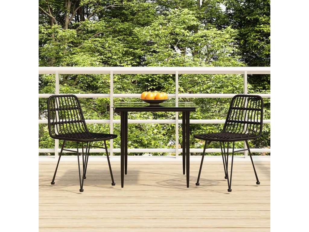 3dílný zahradní jídelní set černý polyratan 3157880