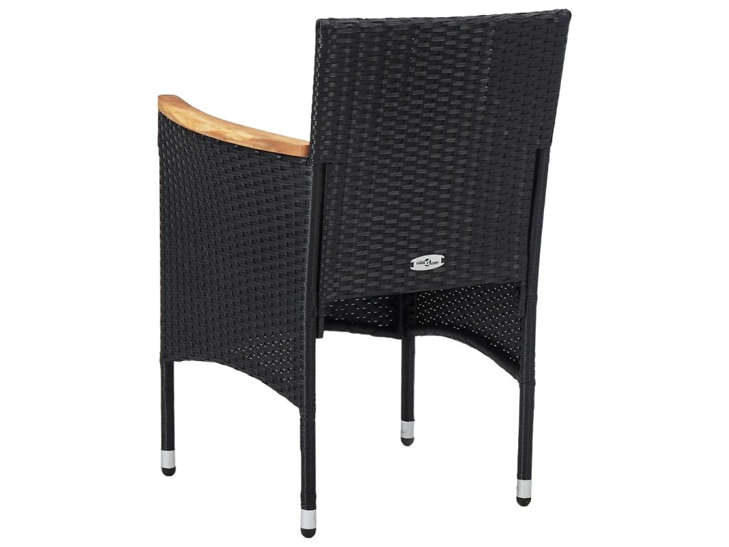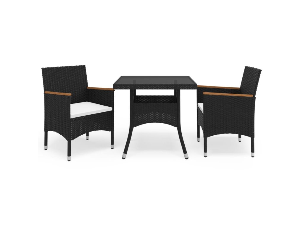 3dílný zahradní jídelní set černý polyratan a akáciové dřevo 3058314
