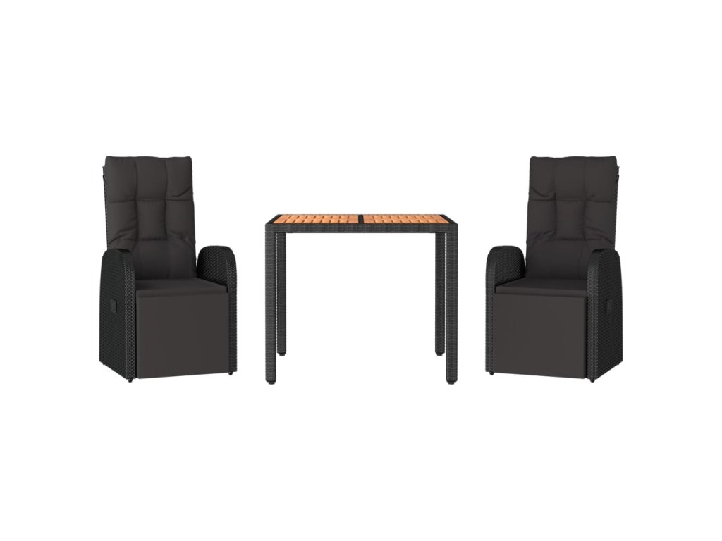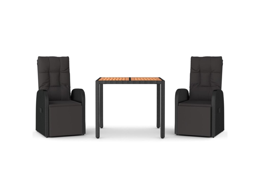 3dílný zahradní jídelní set černý polyratan a masivní akácie 3157606