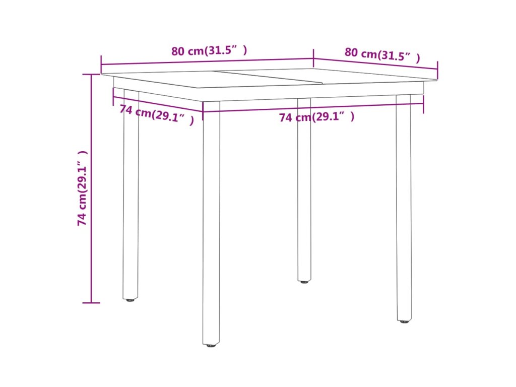 - Rozměry stolu: 80 x 80 x 74 cm (D x Š x V)