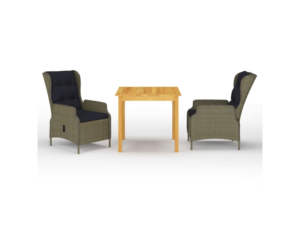 Jídelní stůl je zhotovený z masivního akáciového dřeva s olejovaným povrchem, takže je stabilní, odolný a nenáročný na údržbu. Zahradní židle mají rám z práškově lakované oceli, opletený klimaticky odolným kulatým PE ratanem, jsou tudíž odolné a snadno se čistí. Hustě polstrované podušky vám při odpočinku zaručí mimořádný komfort. Jejich potahy jsou opatřené zipem, abyste je mohli bez námahy stáhnout a oprat. Židle disponují mechanismem s plynovým pístem, umožní vám tedy také nastavit opěradlo do různých poloh. Stačí stisknout tlačítko na boku a opěradlo se sklopí do pohodlné pozice vleže. Vzhledem k lehké konstrukci lze jídelní židle jednoduše přesouvat, kam potřebujete.