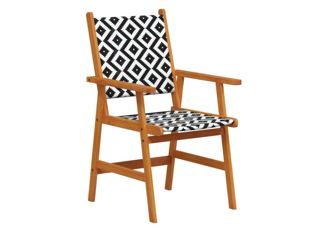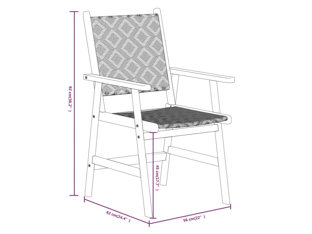Jídelní set je vyrobený z masivního akáciového dřeva, je tedy odolný a stabilní. Tyto venkovní židle mají sedací část a opěradlo z polyratanu, takže vám poskytnou pohodlí při sezení a zároveň se snadno čistí. Se svým atraktivním mřížkovým vzorem upoutají tyto terasové židle na první pohled v jakémkoli obytném prostoru.