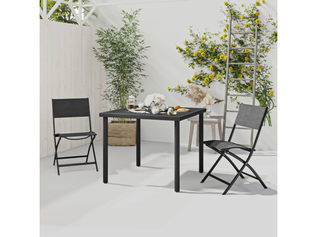 Tento jídelní set má stylový design a odolný ocelový rám a je perfektní volbou pro váš venkovní obytný prostor. Jednoduchá elegance tohoto jídelního setu učiní každou večeři výjimečnou.
