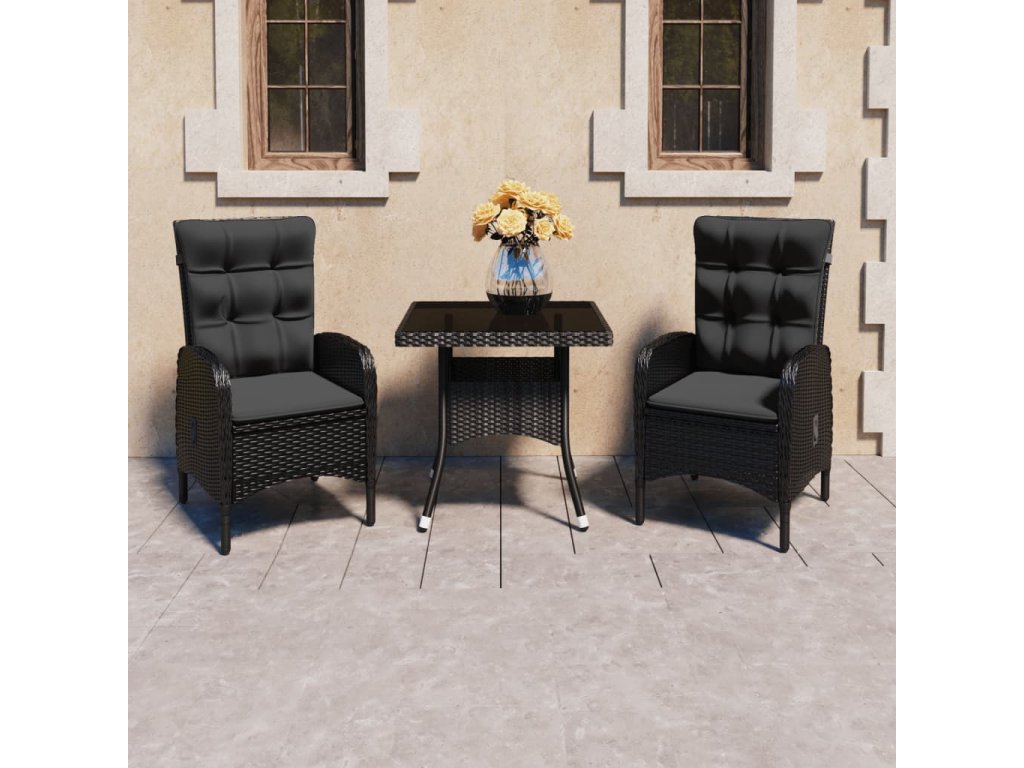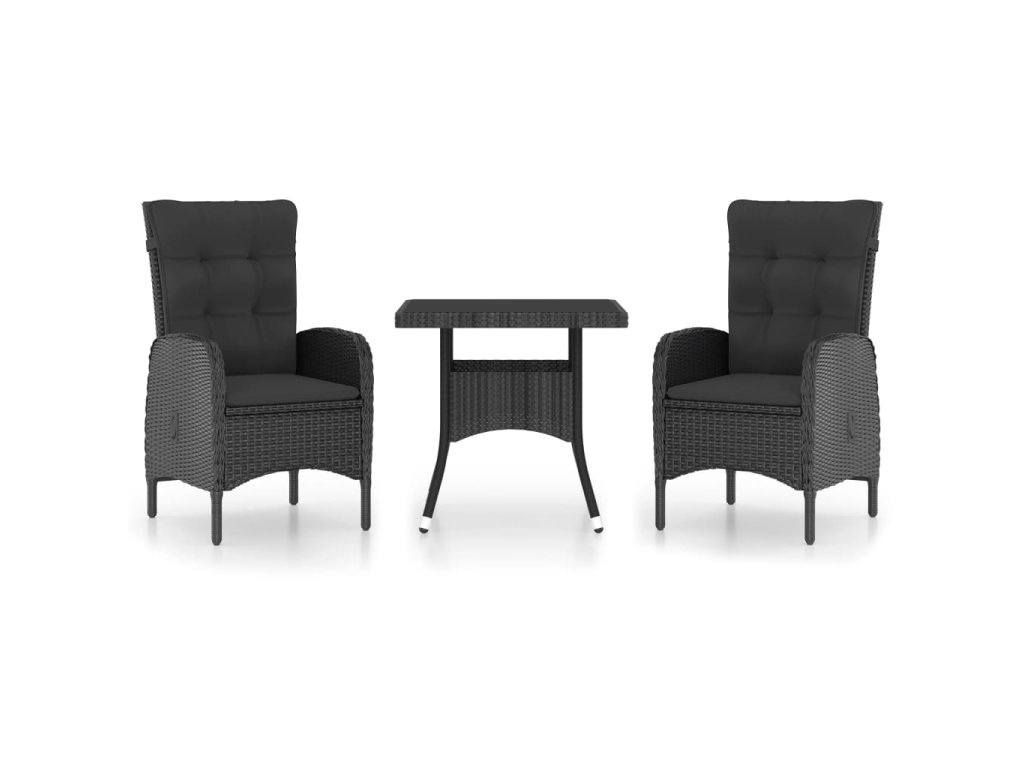 3dílný zahradní jídelní set polyratan a sklo černý 3058526