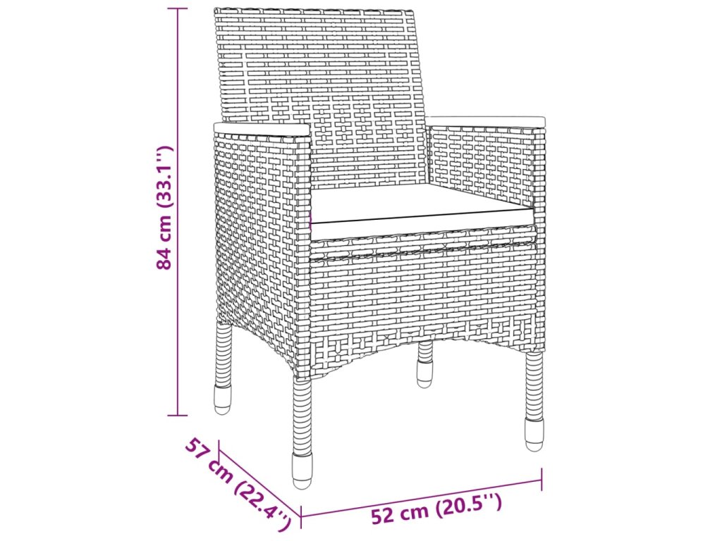 - Pevný rám: Stůl a židle mají práškově lakovaný ocelový rám opletený PE ratanem s UV ochranou, který navíc skvěle odolává povětrnostním vlivům, takže jsou odolné a stabilní.