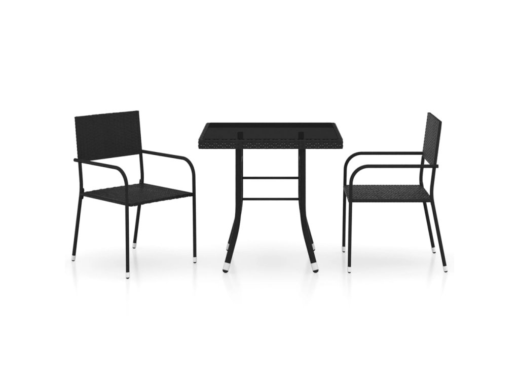 3dílný zahradní jídelní set polyratan černý 3059440
