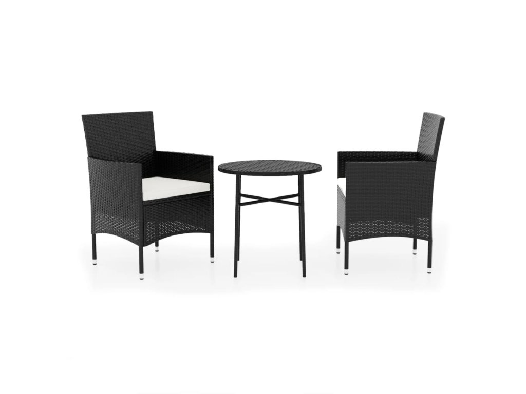 3dílný zahradní jídelní set polyratan černý 3098022