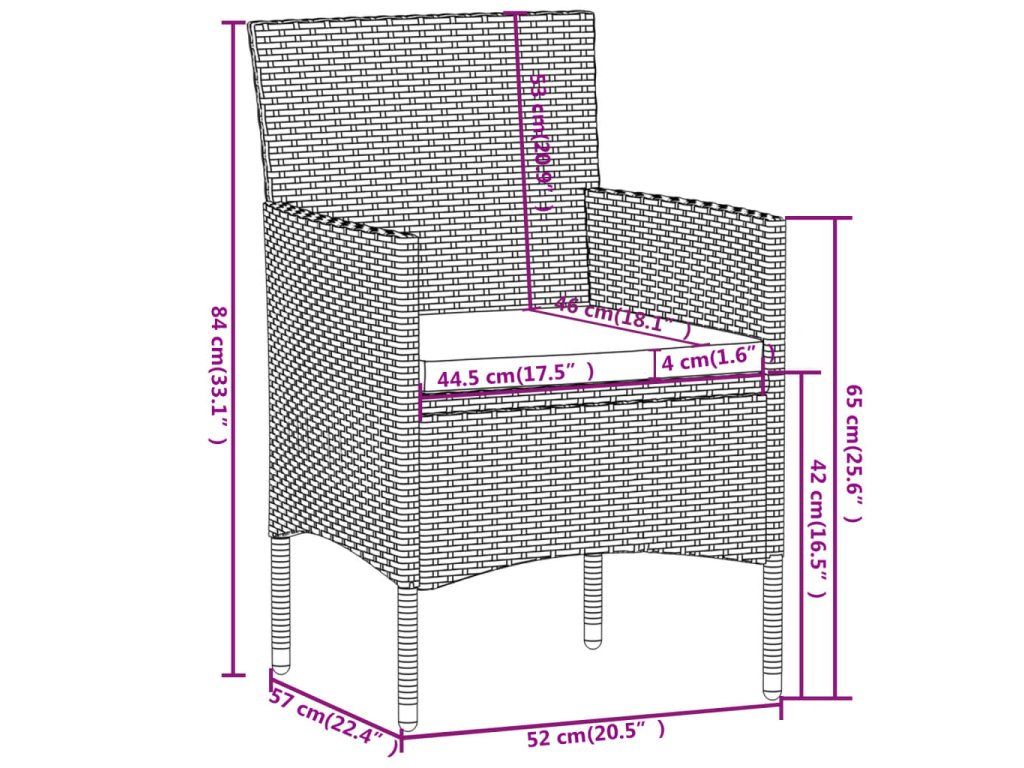 - Rozměry židle: 52 x 57 x 84 cm (Š x H x V)