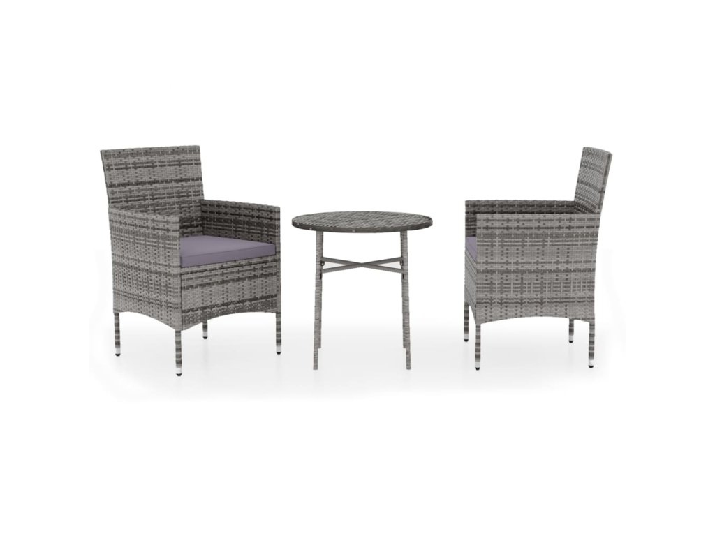 3dílný zahradní jídelní set polyratan šedý 3098023