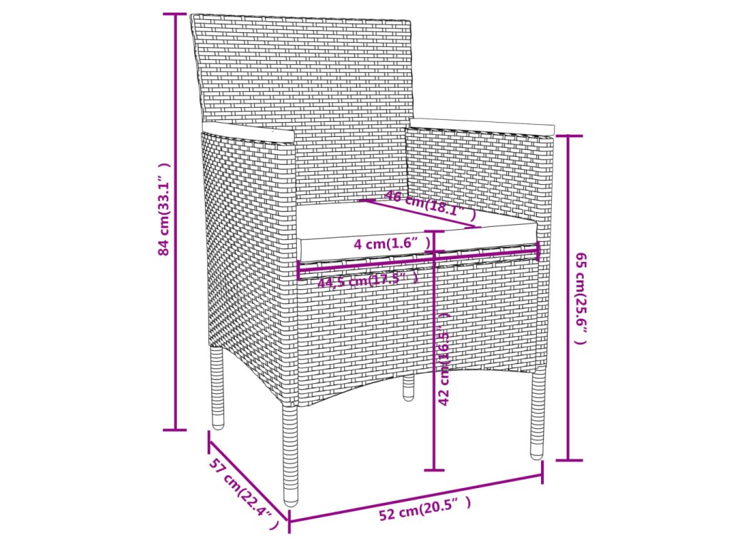 Praktický zahradní jídelní set má práškově lakovaný ocelový rám opletený PE ratanem, je tedy odolný a skvěle se hodí pro každodenní používání. Lehká konstrukce usnadňuje přemisťování všech dílů tohoto setu. Stůl vám poslouží zejména k odložení nápojů a občerstvení, které tak budete mít pěkně po ruce. Židle mají zaoblená opěradla a područky pro lepší ergonomický tvar, zajistí vám proto při sezení maximální pohodlí. Součástí balení jsou navíc i silně polstrované podušky, které vám poskytnou větší oporu. Potah je vybaven zipem, dá se tedy snadno sejmout a vyprat.