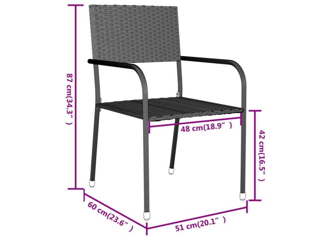 Praktický zahradní jídelní set má práškově lakovaný ocelový rám opletený PE ratanem, takže je odolný, snadno se čistí a je vhodný pro každodenní venkovní použití. Stůl se skvěle hodí k odkládání nápojů a občerstvení, které tak budete mít pěkně po ruce. Židle jsou lehké a dají se stohovat, takže ušetříte místo, když se zrovna nepoužívají.