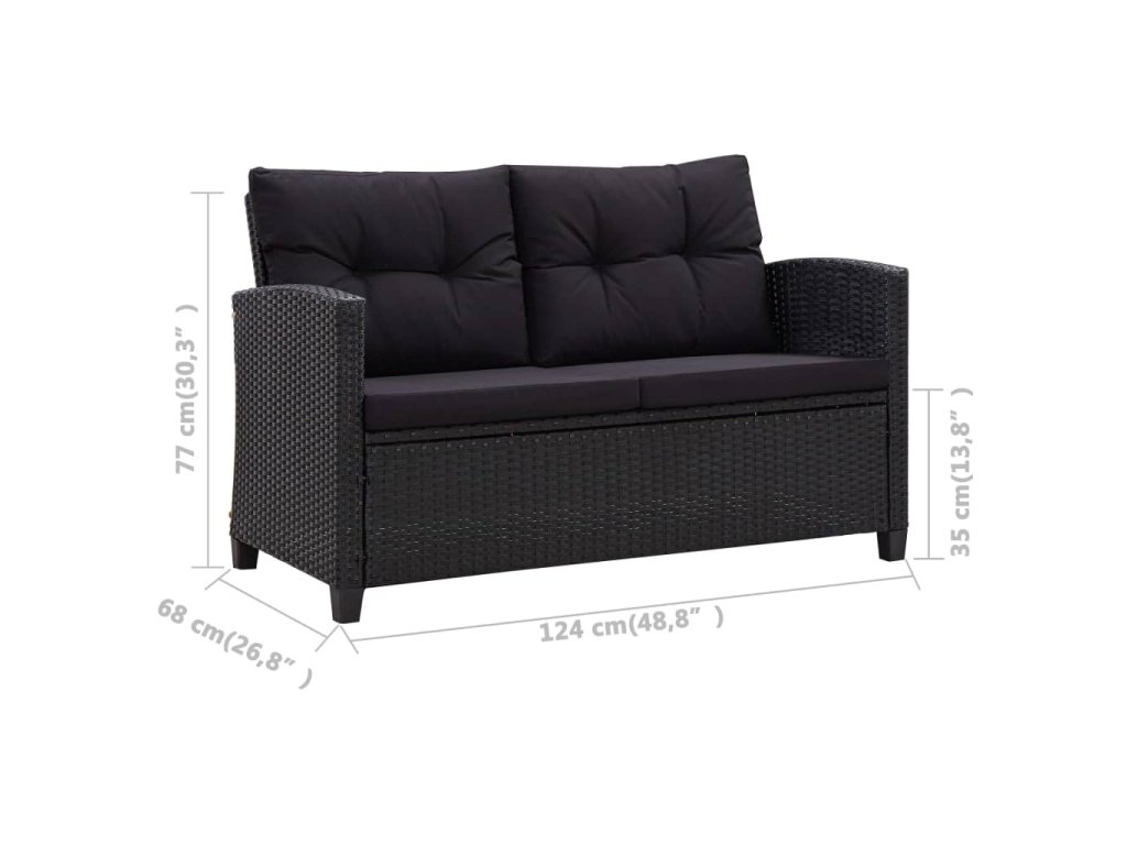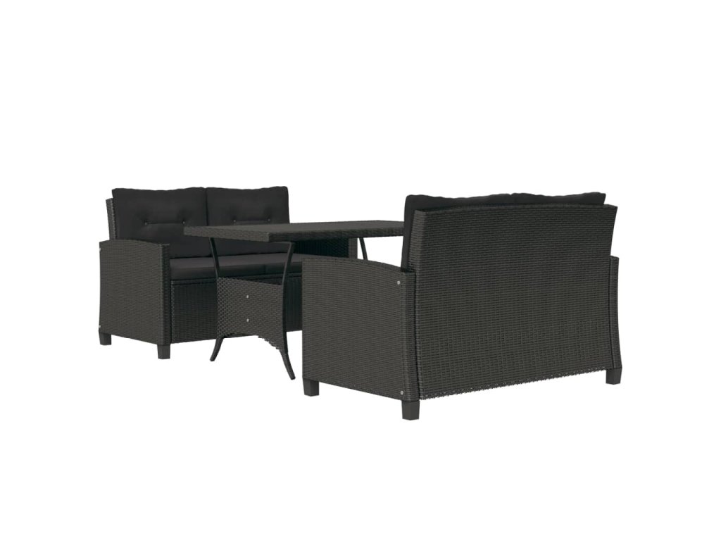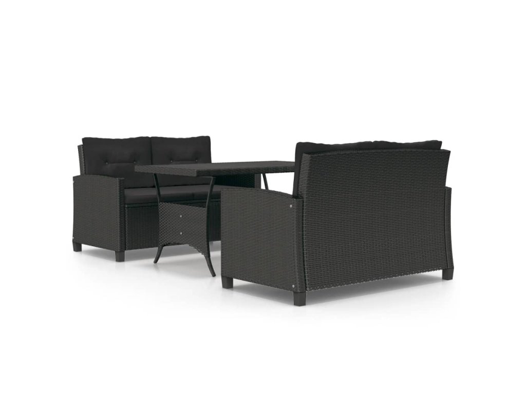 3dílný zahradní jídelní set s černými poduškami polyratan 3095249