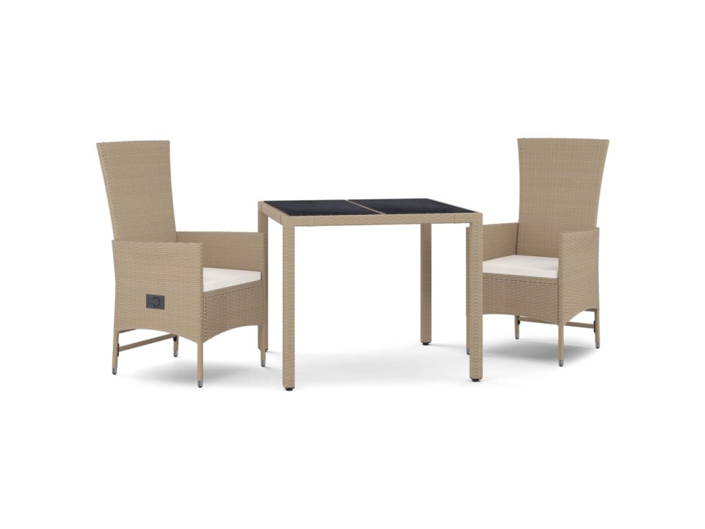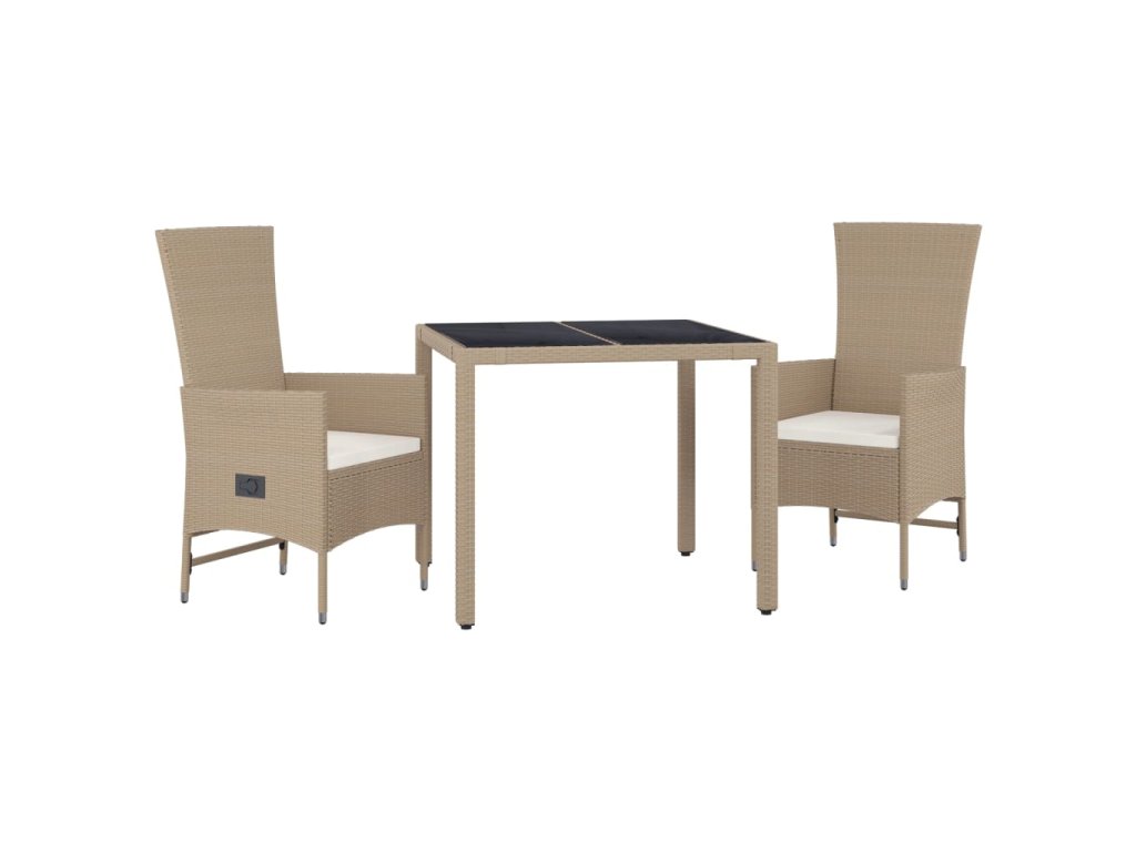 3dílný zahradní jídelní set s poduškami béžový polyratan 3157567