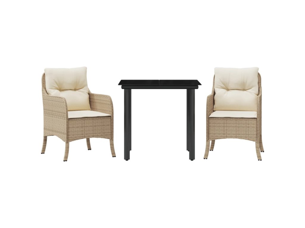 3dílný zahradní jídelní set s poduškami béžový polyratan 3211969