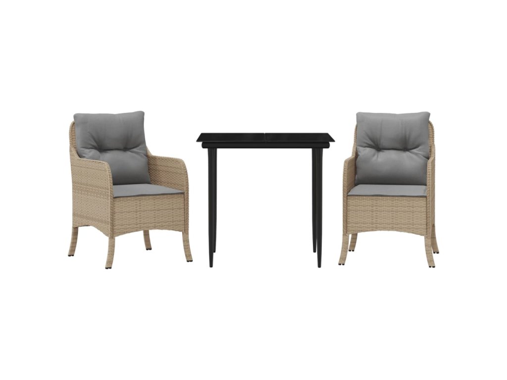 3dílný zahradní jídelní set s poduškami béžový polyratan 3211976