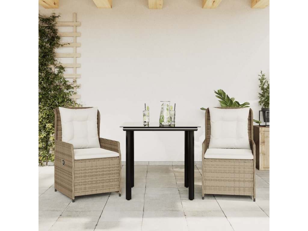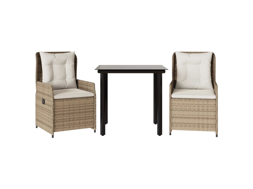 3dílný zahradní jídelní set s poduškami béžový polyratan 3262889