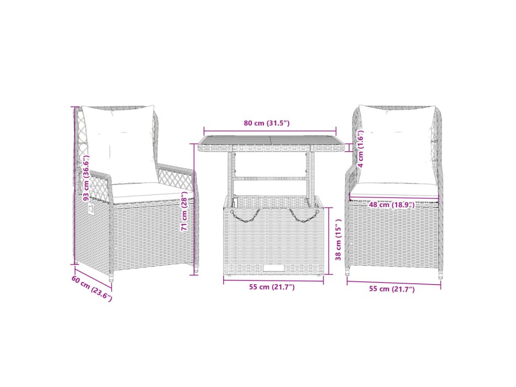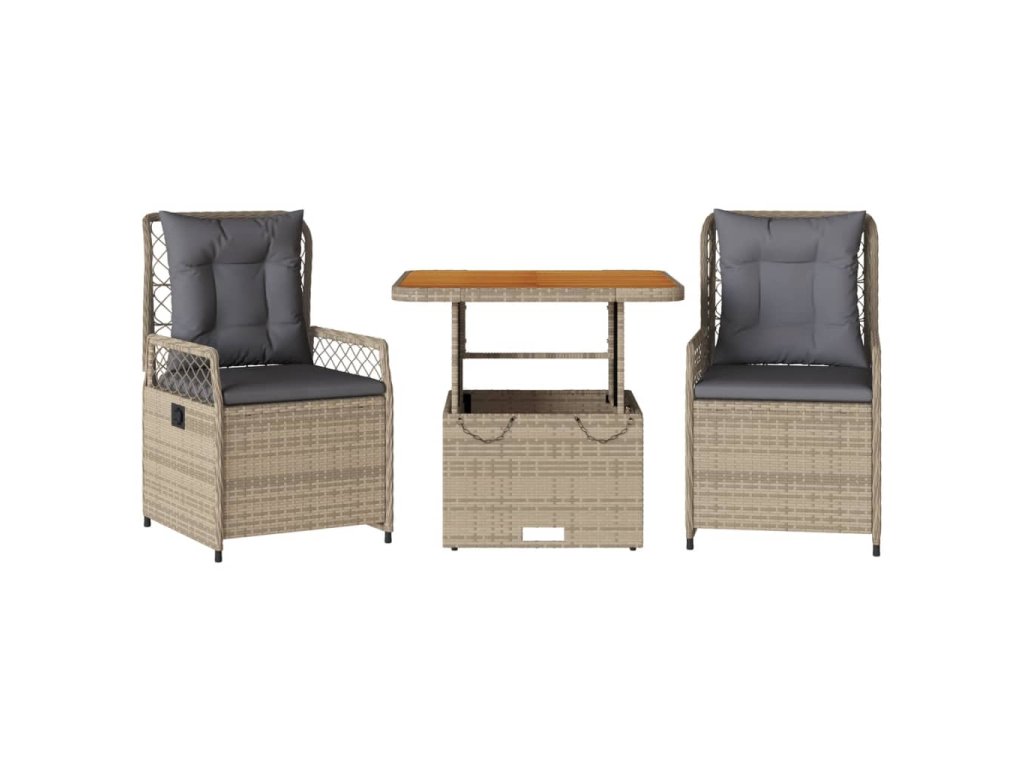 3dílný zahradní jídelní set s poduškami béžový polyratan 3262916