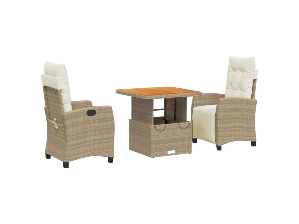 3dílný zahradní jídelní set s poduškami béžový polyratan 3277411