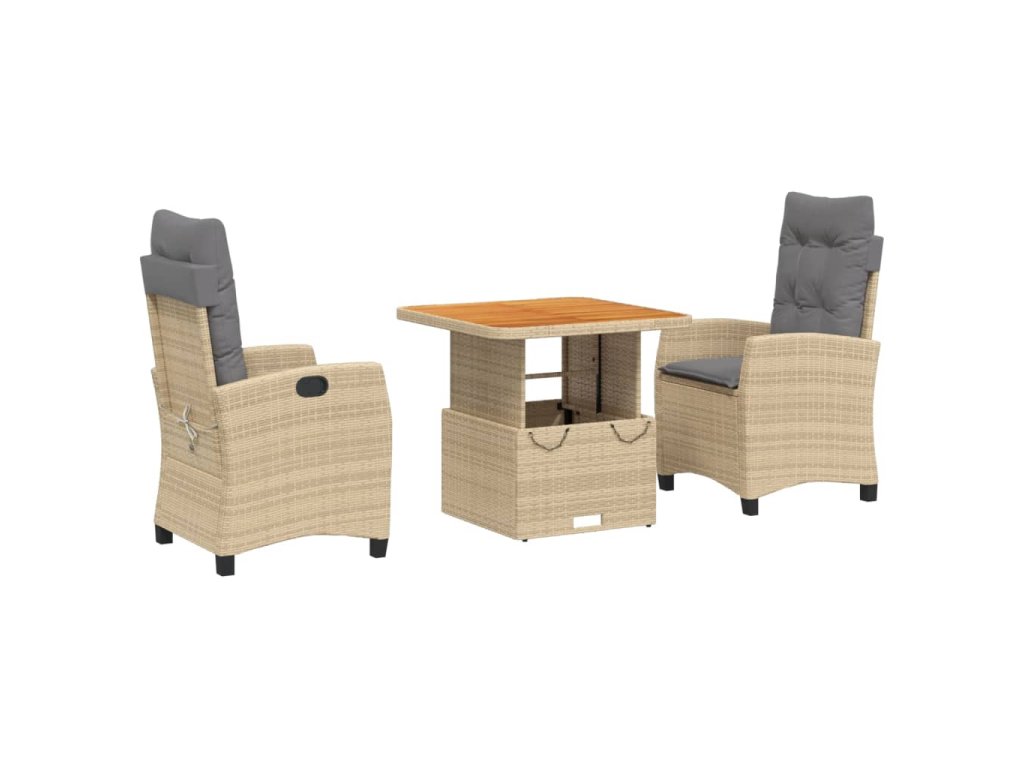 3dílný zahradní jídelní set s poduškami béžový polyratan 3277421
