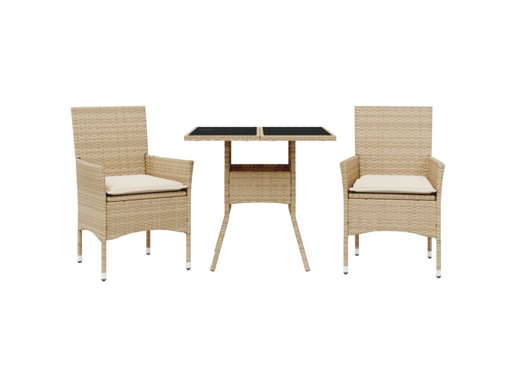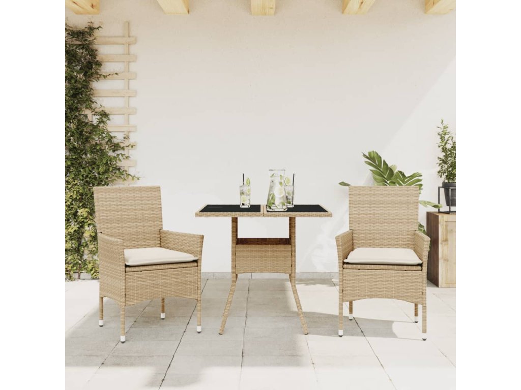 3dílný zahradní jídelní set s poduškami béžový polyratan a sklo 3278609