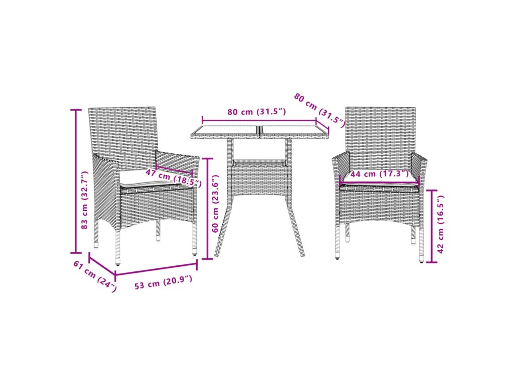- Skleněná deska stolu: Deska venkovního stolu je zhotovena ze silného a odolného tvrzeného skla, takže ji snadno očistíte vlhkým hadříkem a zároveň do vašeho venkovního prostoru vnese nádech elegance.