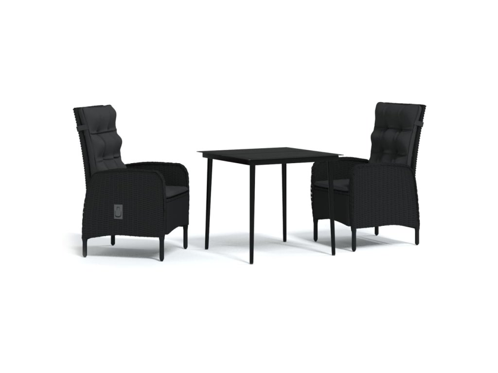 3dílný zahradní jídelní set s poduškami černý 3099365