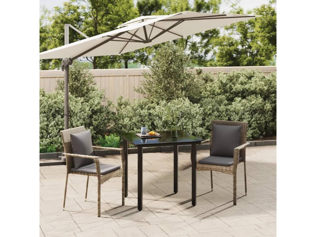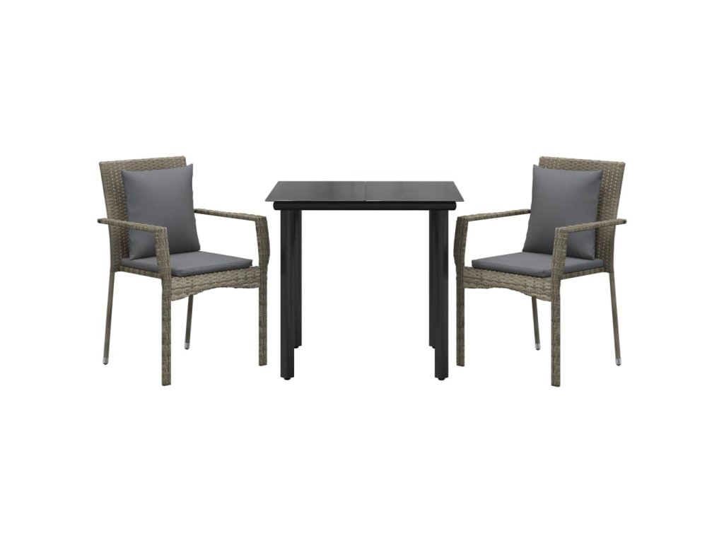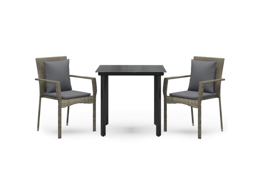 3dílný zahradní jídelní set s poduškami černý a šedý polyratan 3185113
