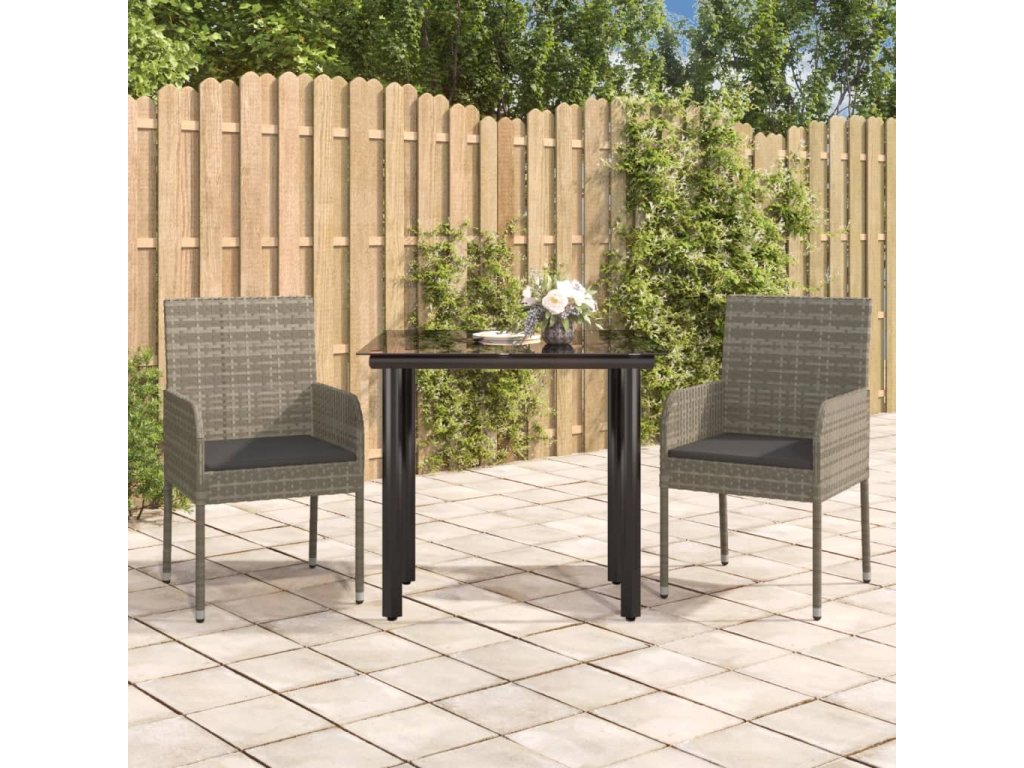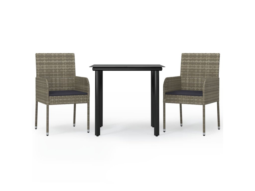 3dílný zahradní jídelní set s poduškami černý a šedý polyratan 3185161