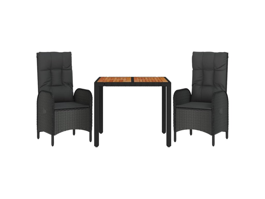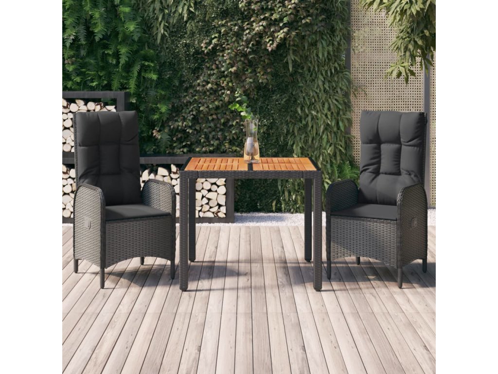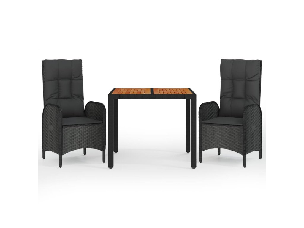 3dílný zahradní jídelní set s poduškami černý polyratan 3185068