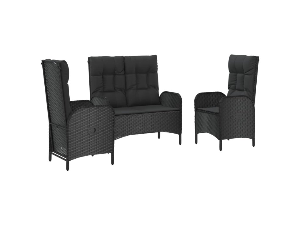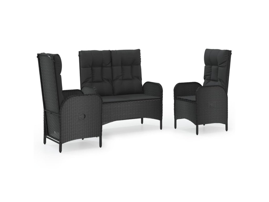 3dílný zahradní jídelní set s poduškami černý polyratan 3185093