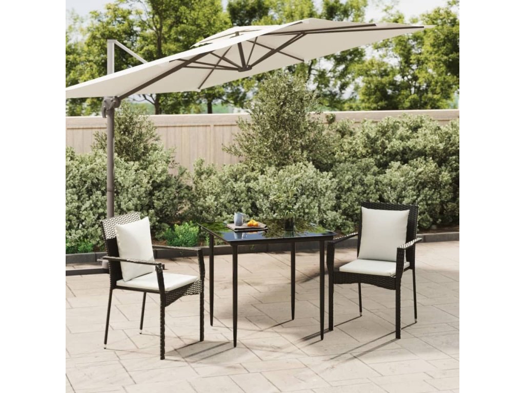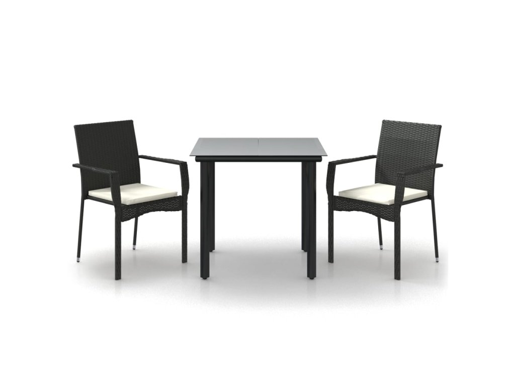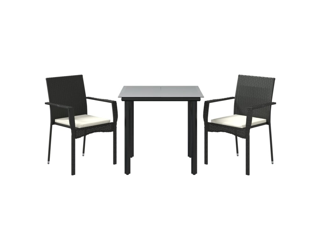 3dílný zahradní jídelní set s poduškami černý polyratan 3185131