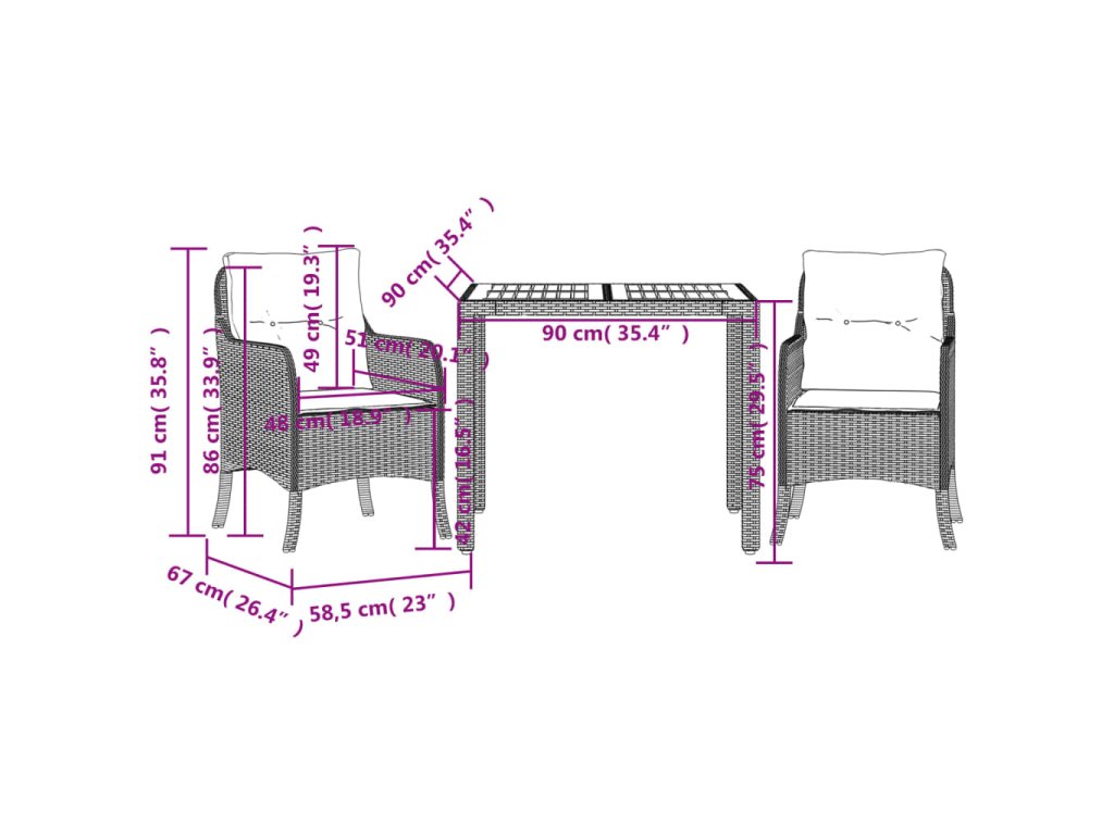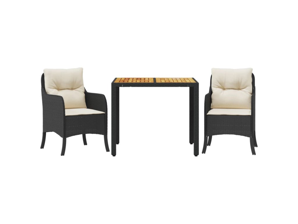 3dílný zahradní jídelní set s poduškami černý polyratan 3211860