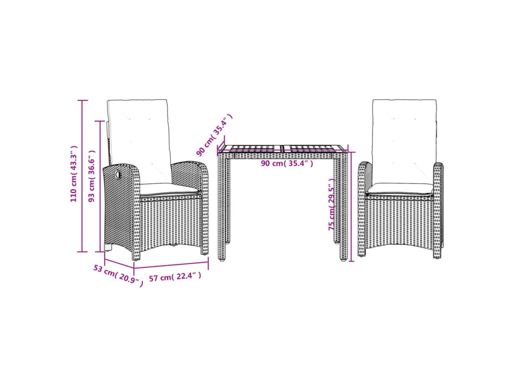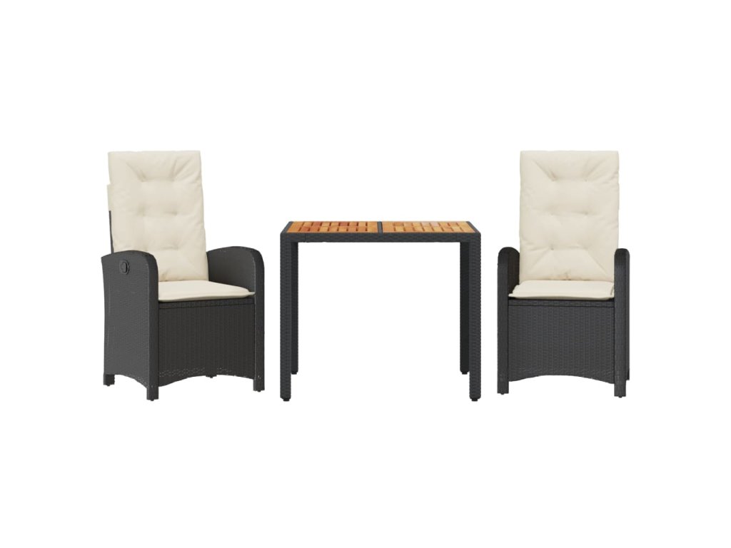 3dílný zahradní jídelní set s poduškami černý polyratan 3212221