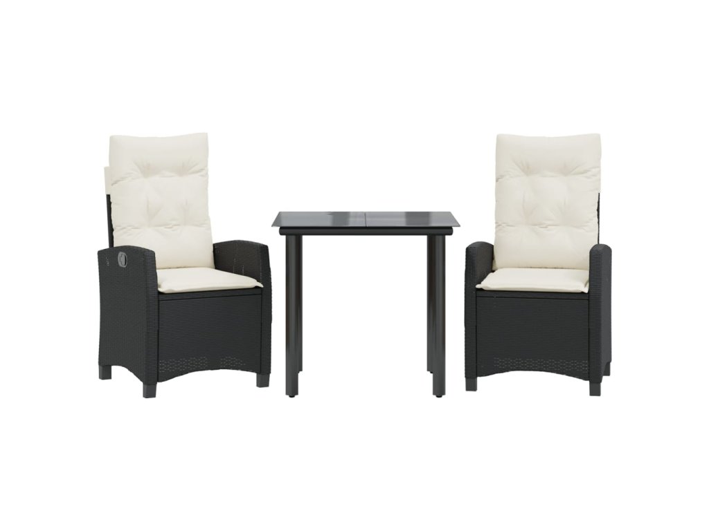 3dílný zahradní jídelní set s poduškami černý polyratan 3212732