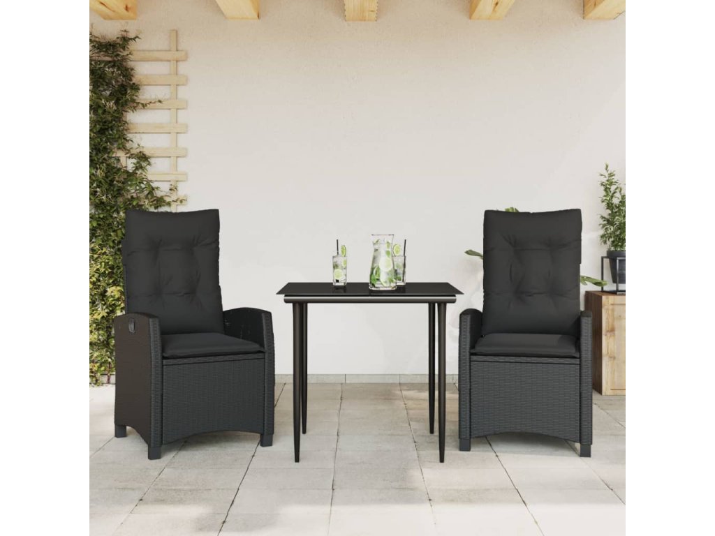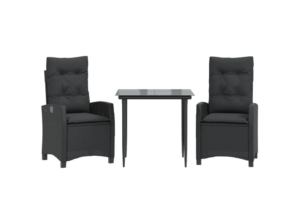 3dílný zahradní jídelní set s poduškami černý polyratan 3212742