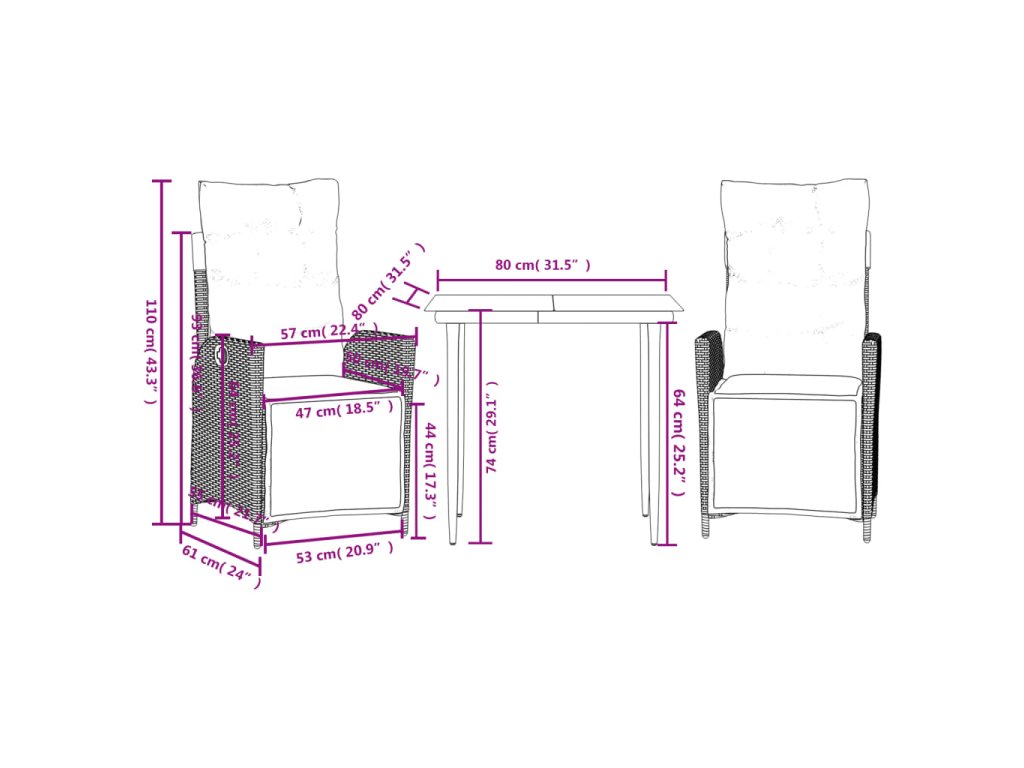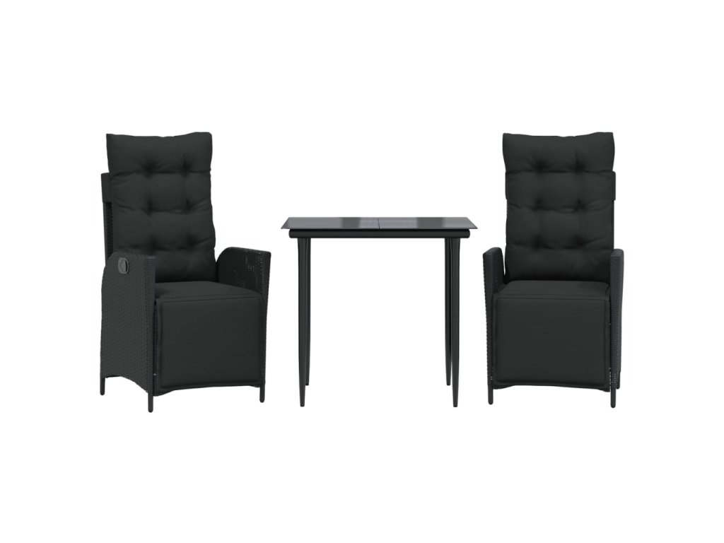 3dílný zahradní jídelní set s poduškami černý polyratan 3213392