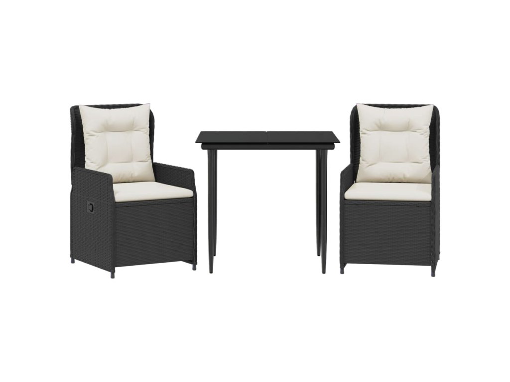 3dílný zahradní jídelní set s poduškami černý polyratan 3262826