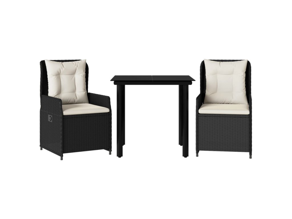 3dílný zahradní jídelní set s poduškami černý polyratan 3262833