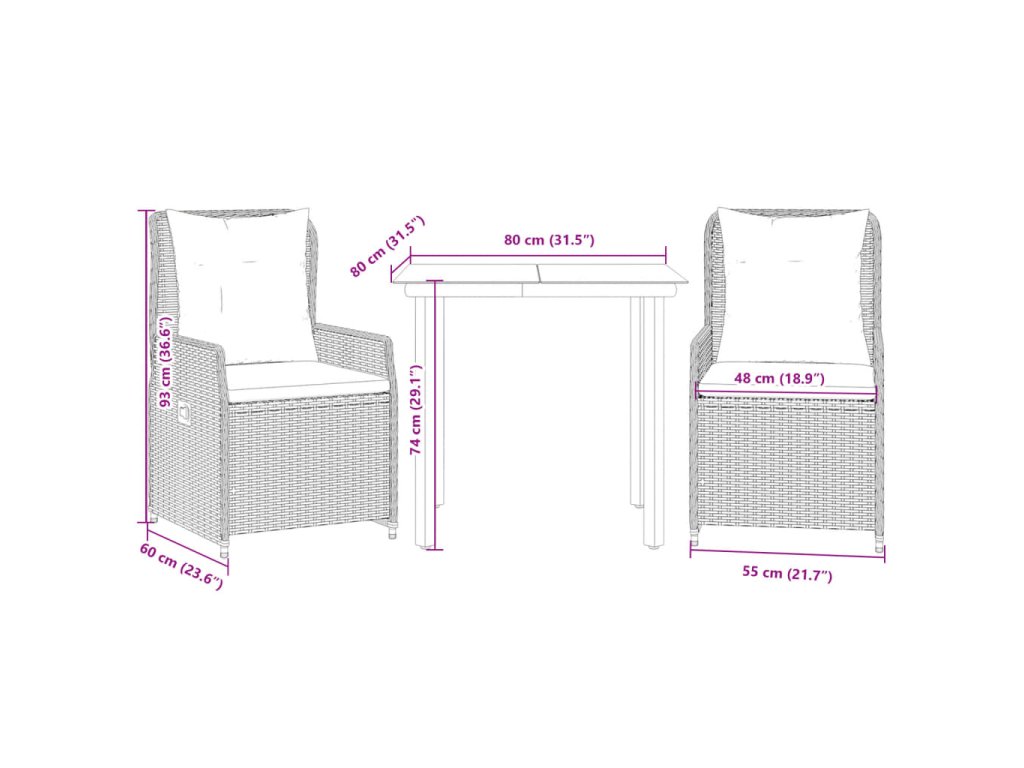 - Rozměry: 80 x 80 x 74 cm (D x Š x V)