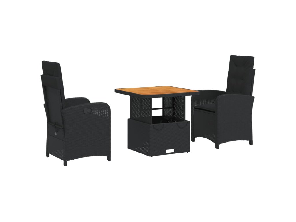 3dílný zahradní jídelní set s poduškami černý polyratan 3277325