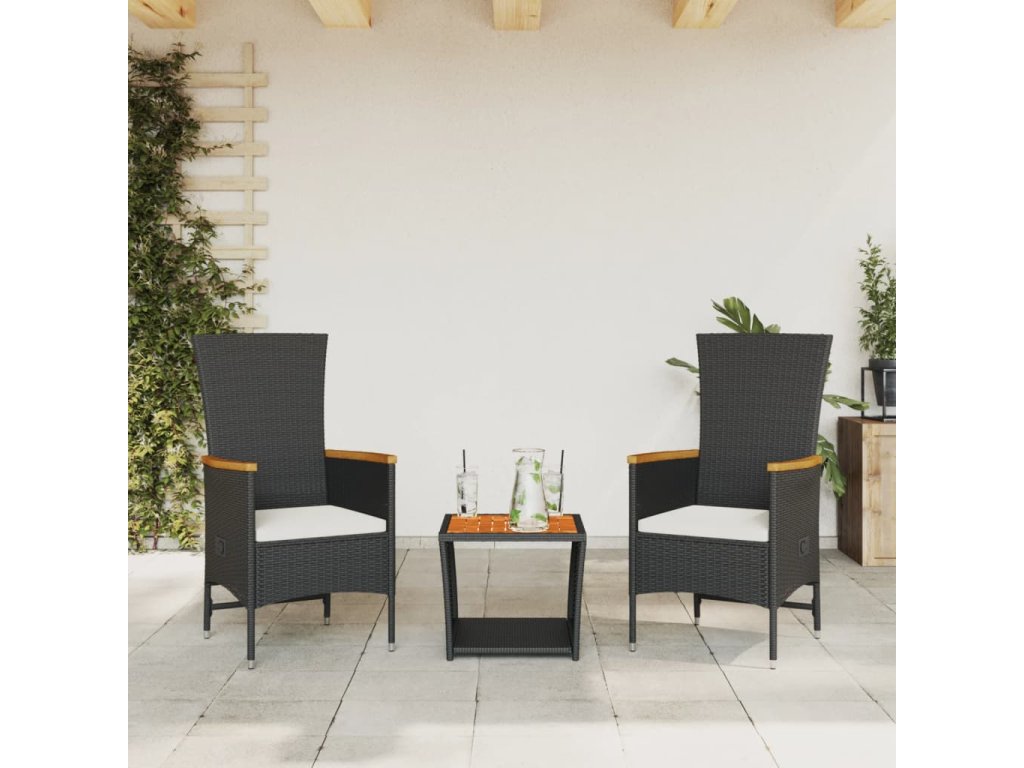 3dílný zahradní jídelní set s poduškami černý polyratan 3277540